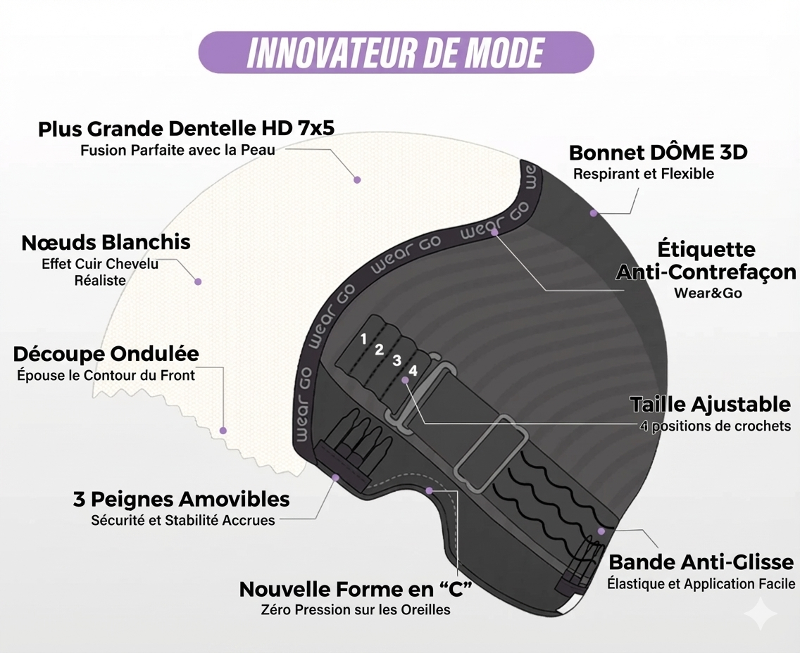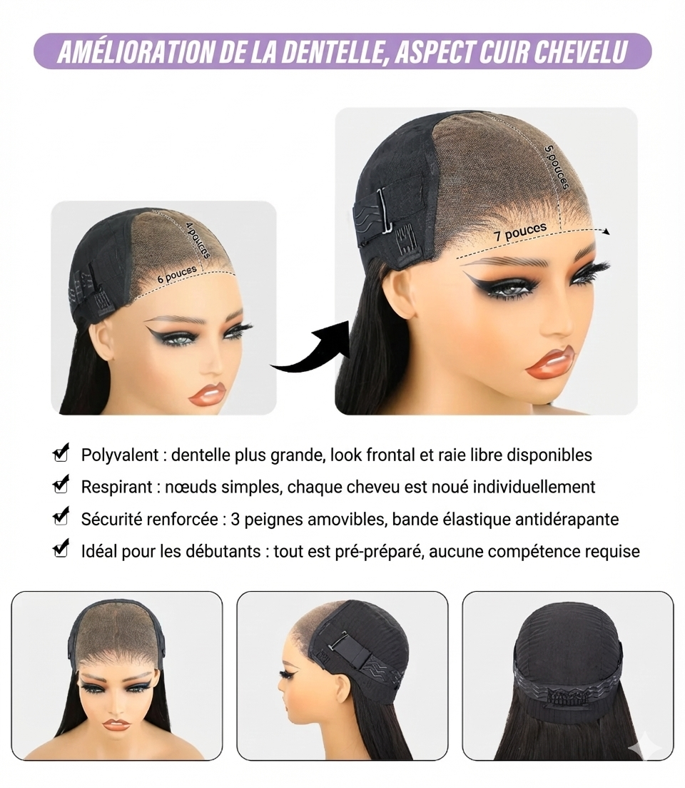 Une structure à double trame renforcée qui empêche la chute des cheveux, vous assurant de garder ce volume impressionnant durablement.